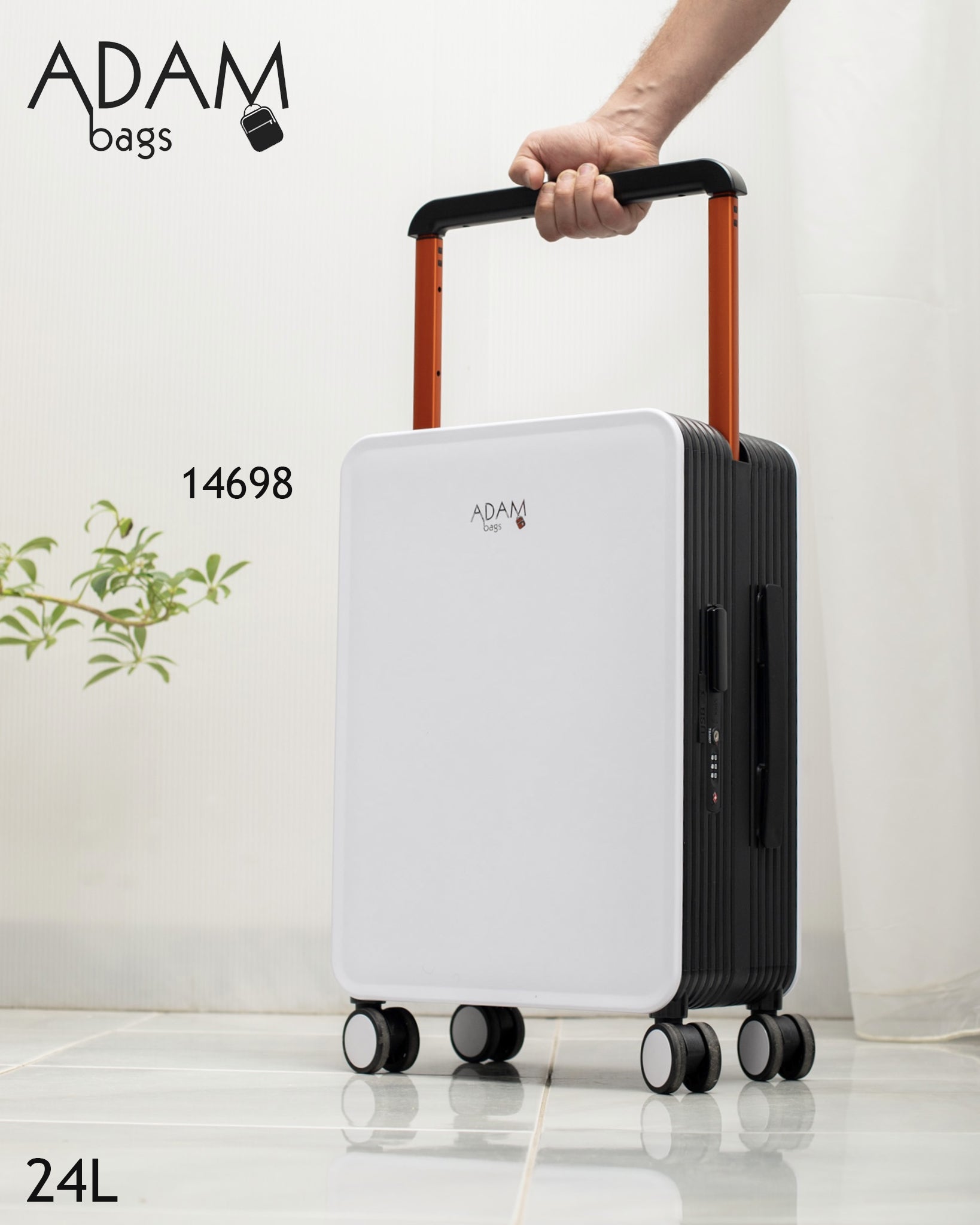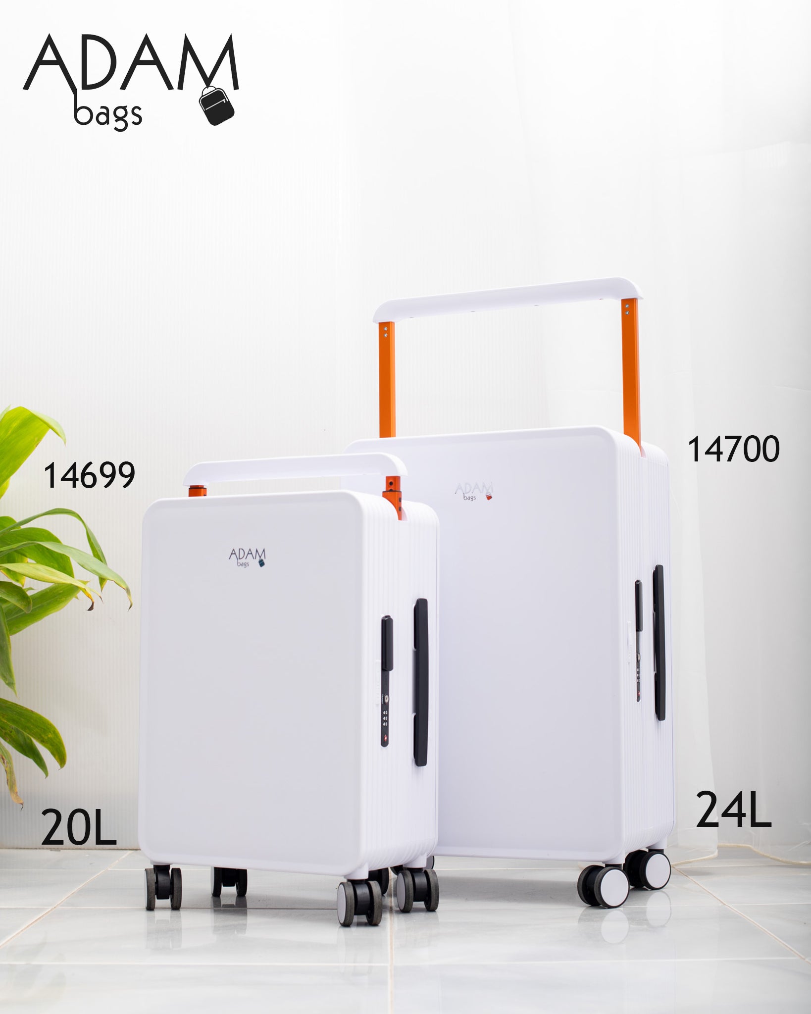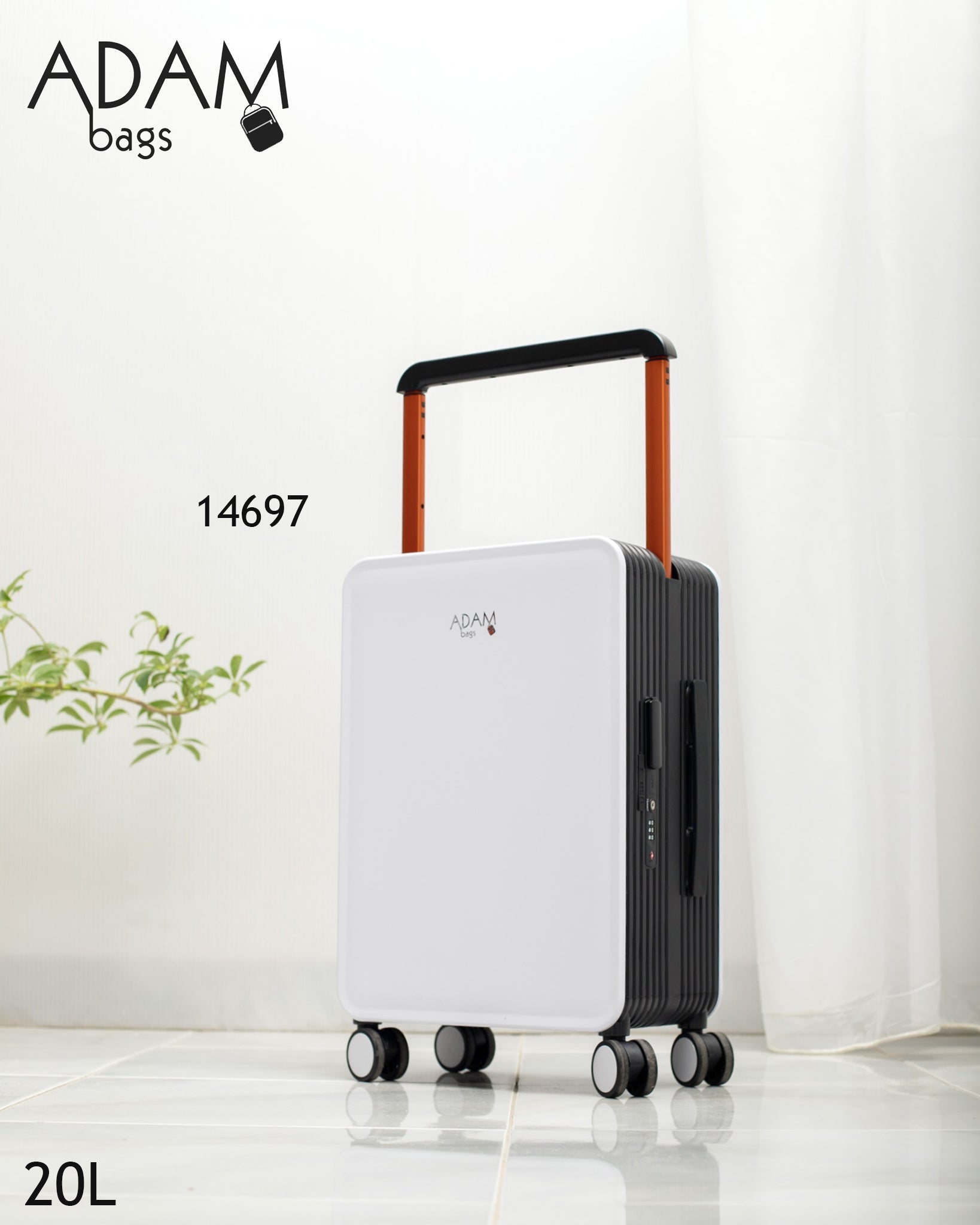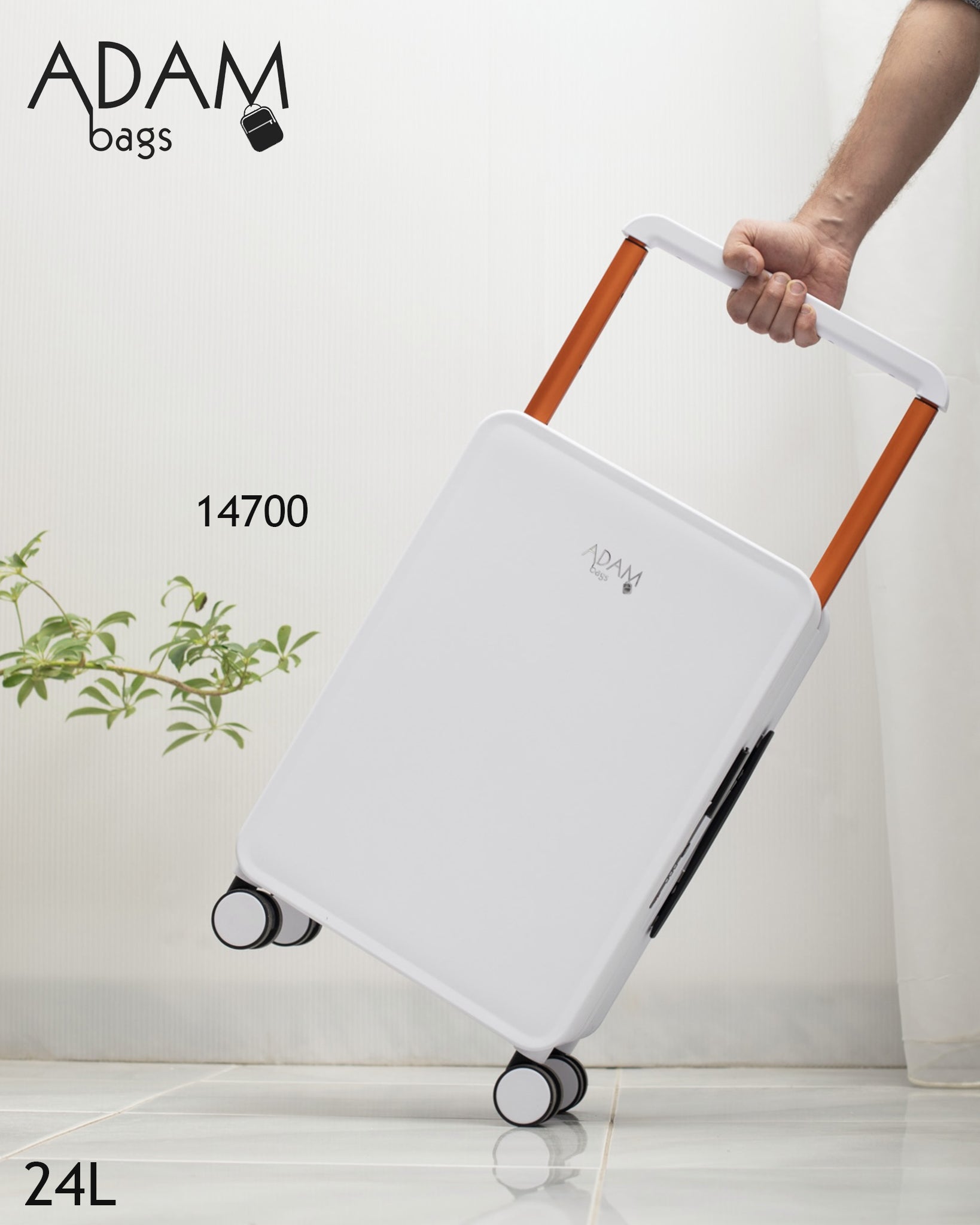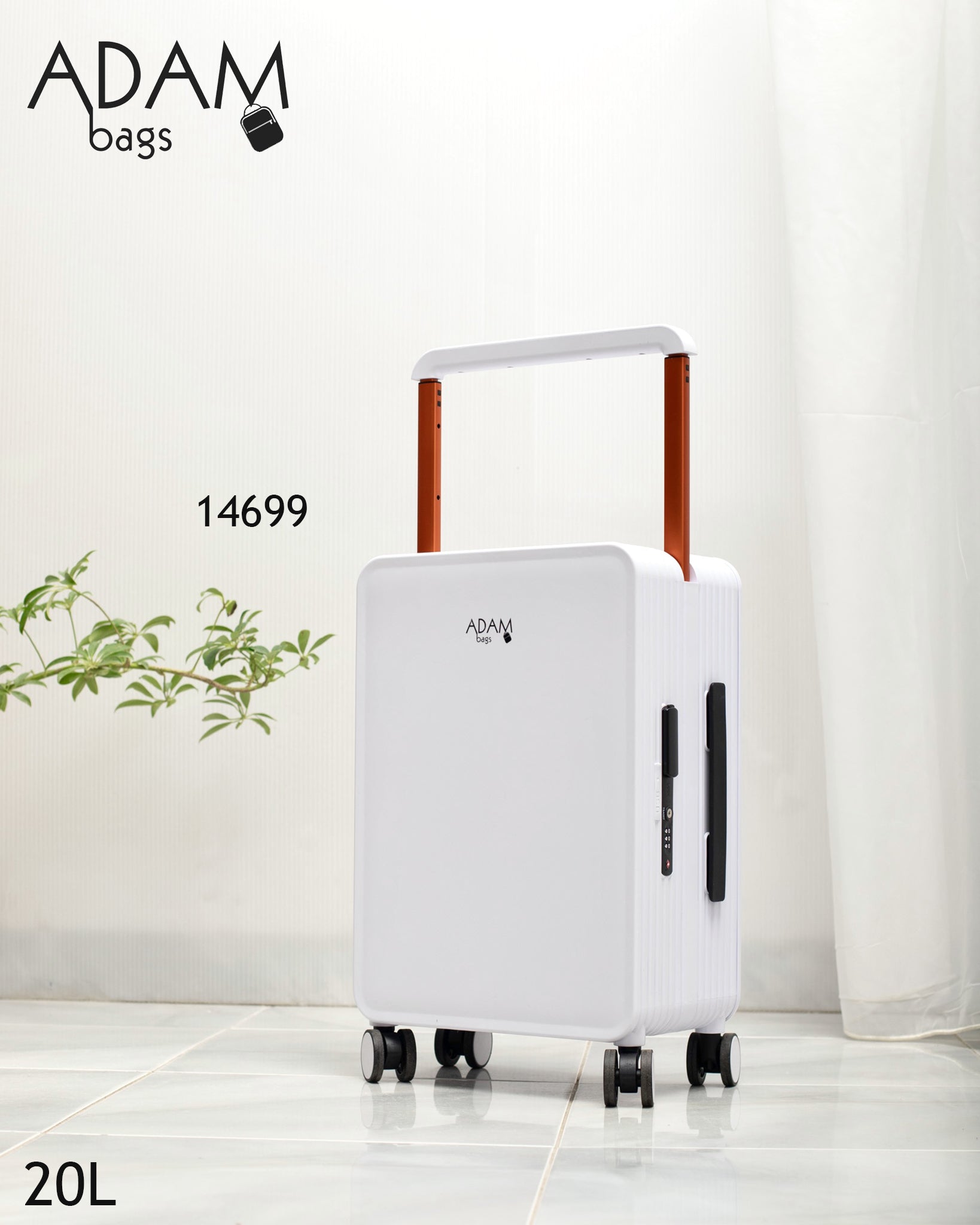 حقيبة سفر أنيقة بلون أبيض ناصع، بتصميم عصري يجمع بين الخفة والصلابة، مخصصة للتنقل السريع والسفر الخفيف مع مظهر راقٍ يليق بالاستخدام اليومي والرحلات القصيرة.